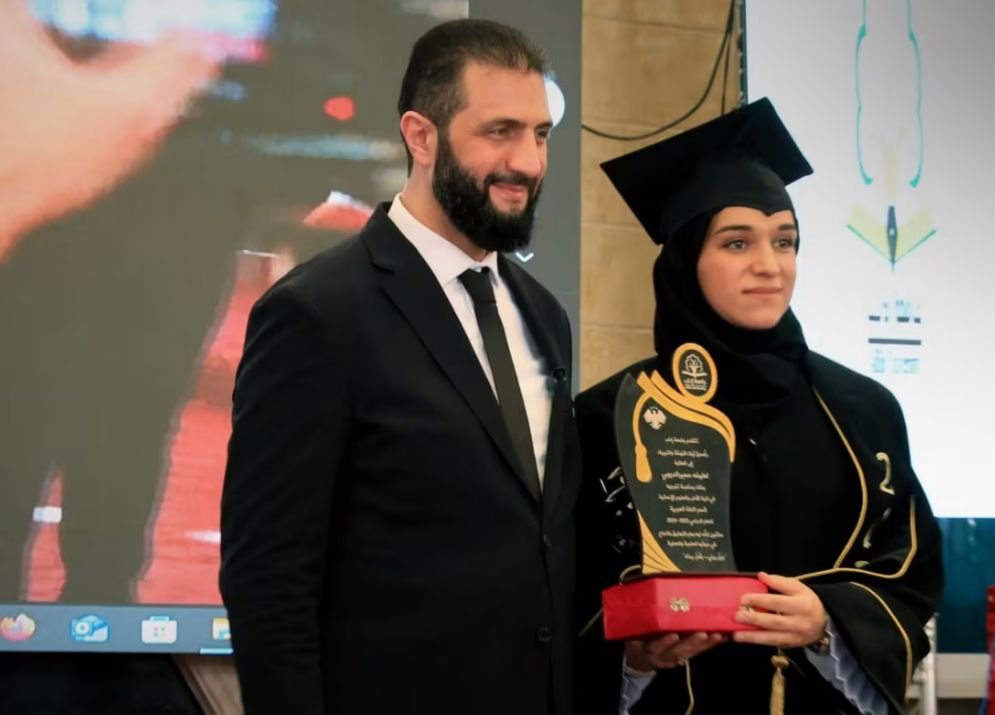 أحمد الشرع يثير تفاعلا خلال حضوره حفل تخرج زوجته لطيفة الدروبي