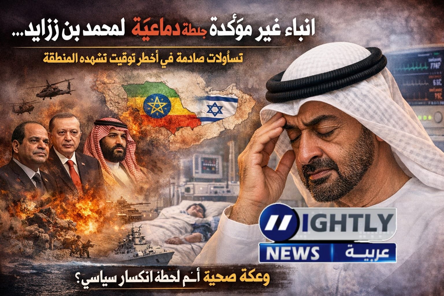 في توقيت لا يحتمل الصدفة، ومع اشتعال واحد من أعقد المشاهد الجيوسياسية في الشرق الأوسط والقرن الإفريقي، تداولت وسائل إعلام إقليمية، أبرزها صحف تركية، أنباء غير مؤكدة عن تعرض الشيخ محمد بن زايد آل نهيان لجلطة دماغية، أو وعكة صحية خطيرة استدعت إلغاء تحركات دبلوماسية على أعلى مستوى.