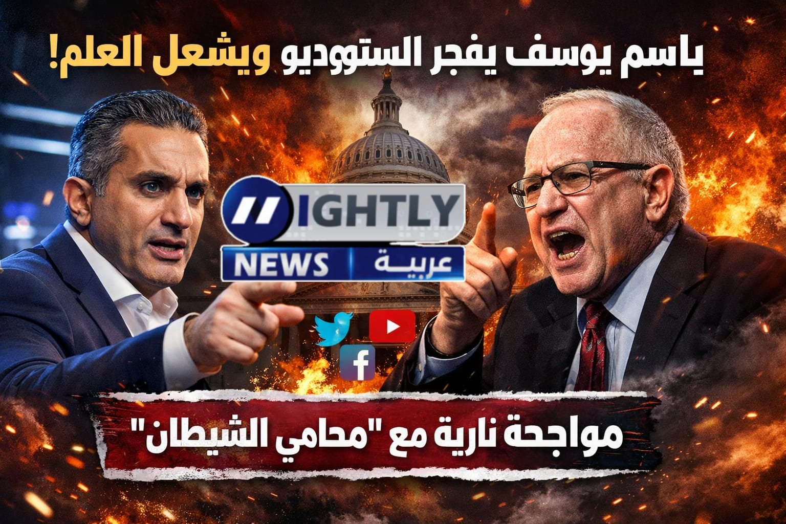 المواجهة التي قلبت المشهد وقعت خلال حلقة من برنامج الإعلامي البريطاني بيرس مورغان، والتي استضافت باسم يوسف إلى جانب المحامي الأمريكي الشهير آلان ديرشوفيتز، أحد أبرز الأسماء القانونية المثيرة للجدل في الولايات المتحدة.