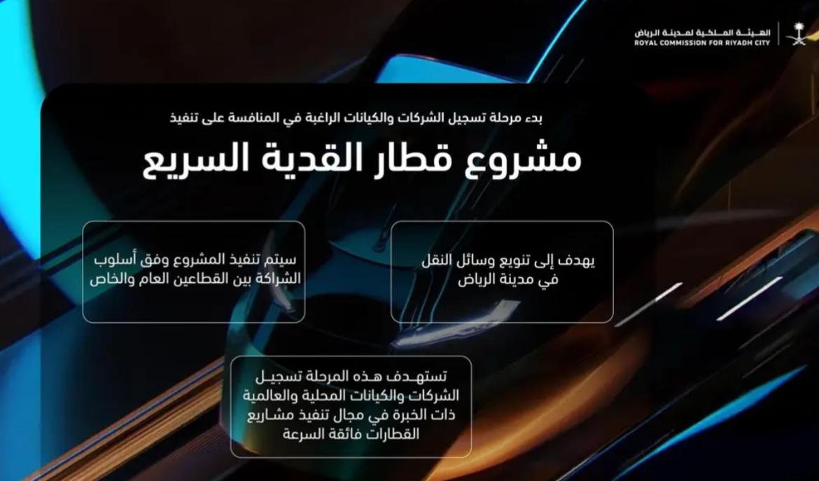 أعلنت الهيئة الملكية لمدينة الرياض بالشراكة مع المركز الوطني للتخصيص وشركة القدية للاستثمار. عن انطلاق مرحلة تسجيل الشركات والكيانات الراغبة في المنافسة لتنفيذ المرحلة الأولى من مشروع قطار القدية السريع، وذلك عبر نموذج الشراكة بين القطاعين العام والخاص.