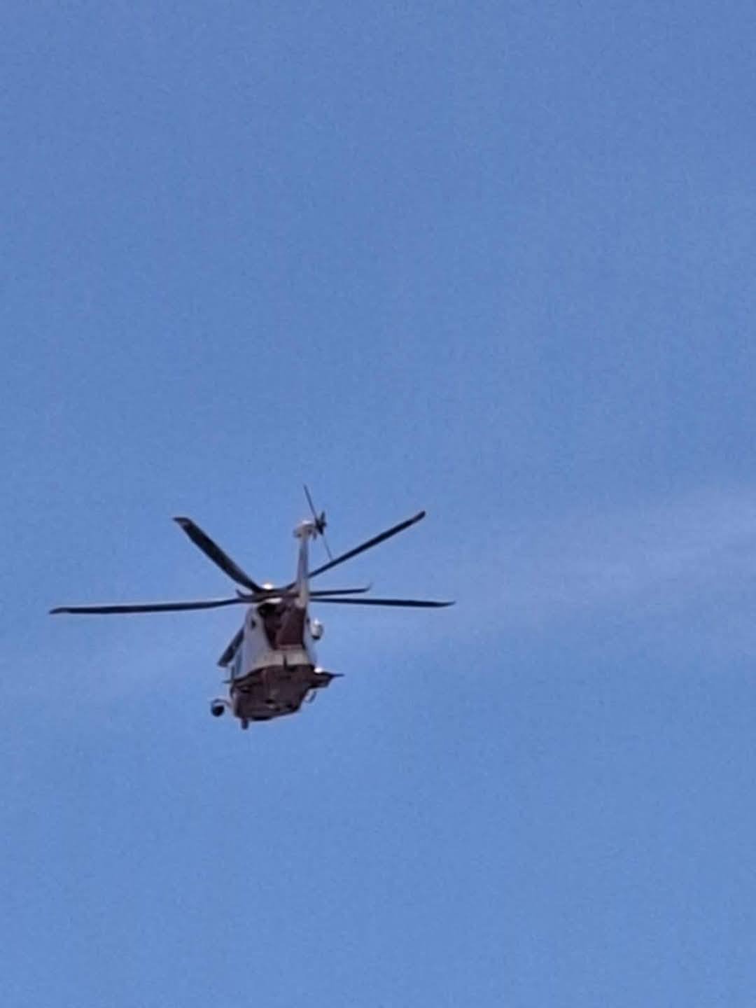 تمشيط المكان بطائرة هليكوبتر  للبحث عن الطائرة التي سقطت في البحر، أعلي الصخور، أمام شاطئ 63 برأس البر