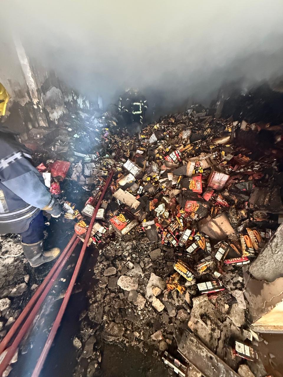 وعلاوه على ذالك، أخضعت النيران لعمليات إخماد دقيقة. كما نُفِّذت أعمال تبريد موسعة، وبالتالي مُنِع تجدد الاشتعال مرة أخرى. وفي السياق ذاته، سجلت خسائر مادية كبيرة نتيجة احتراق البضائع بالكامل داخل المخزن.