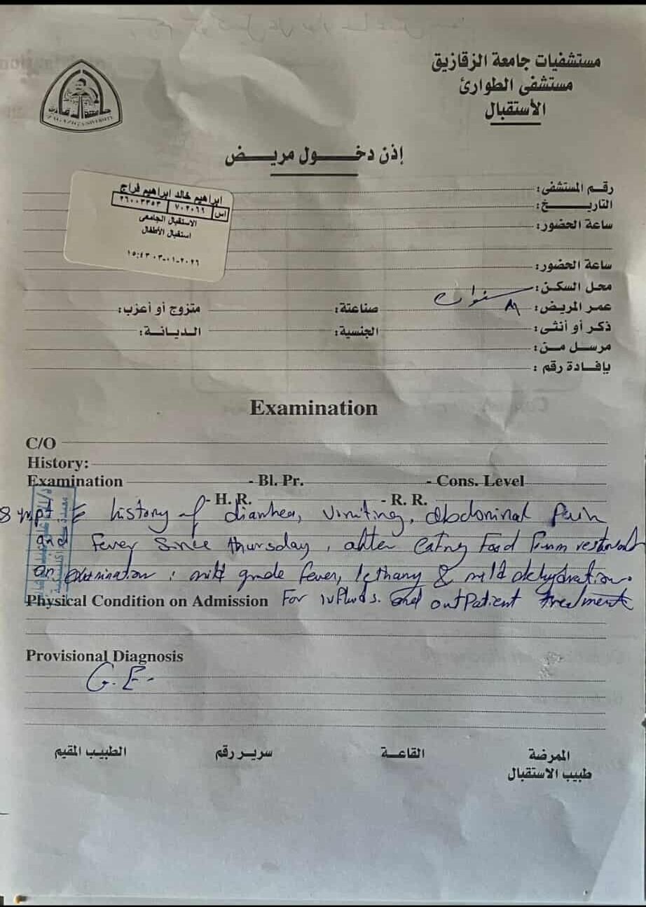 تقول الأم: «اتفاجئت بعدد كبير من المواطنين داخل المستشفى بيعانوا من نفس الأعراض. وبعد ما اتكلمنا مع بعض، اكتشفنا إن كل الحالات تقريبًا أكلت من نفس المكان وفي نفس اليوم».