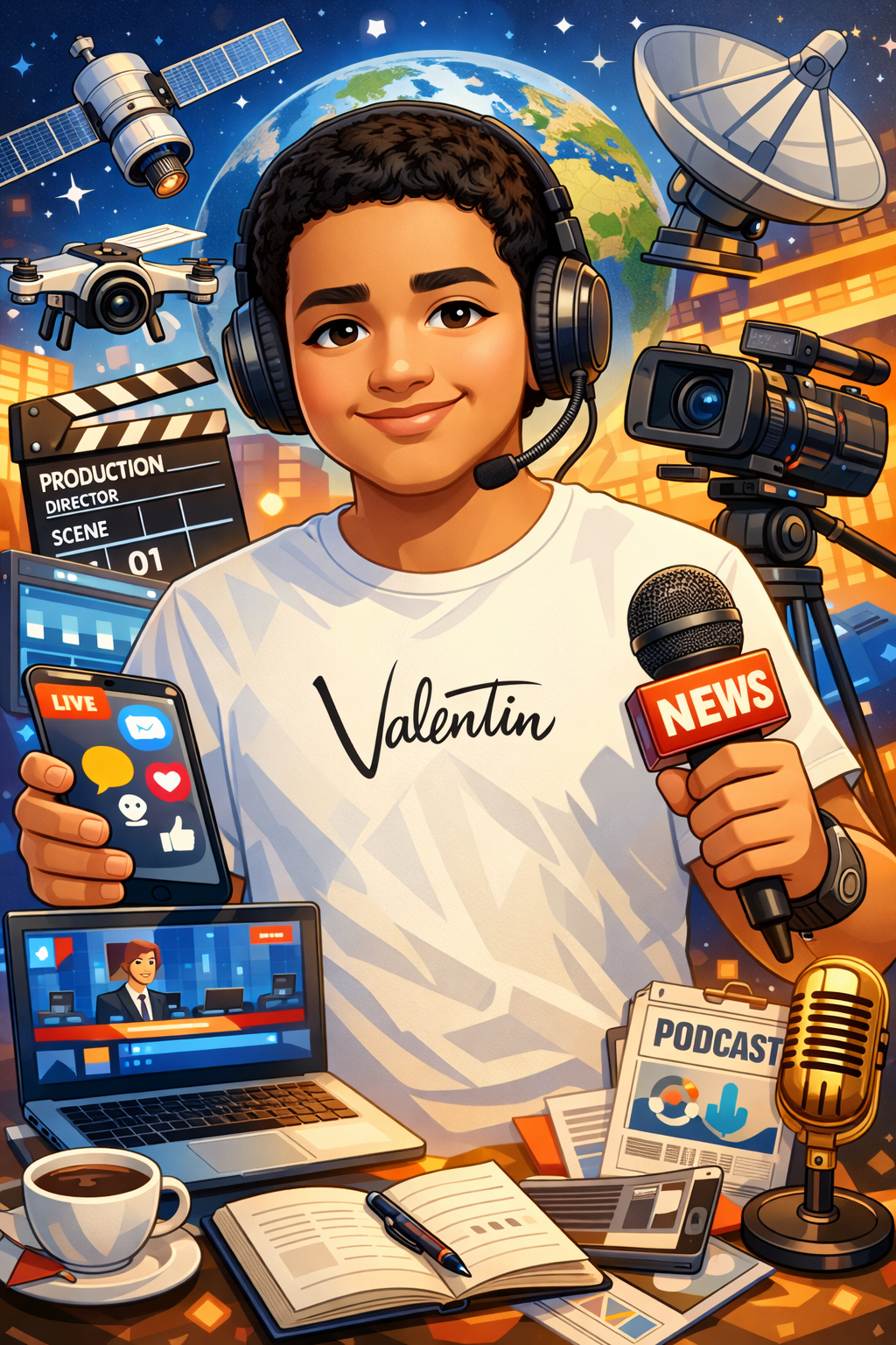 Create a caricature of me based on everything you know about me. Keep my face recognizable, slightly exaggerate my features, and place me in a scene that reflects my job.