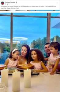 قام رونالدو (41 عامًا) بنشر صور تظهره محاطًا بخطيبته جورجينا رودريجيز، ووالدته دولوريس أفييرو، وأخواته بالإضافة إلى بناته. الرسالة التي علق بها على الصور عبّرت عن تقديره العميق للدور الذي تلعبه المرأة في حياته اليومية، مؤكدًا أنه ممتن “لكل يوم” لتواجد هؤلاء النسوة القويات في محيطه الشخصي.