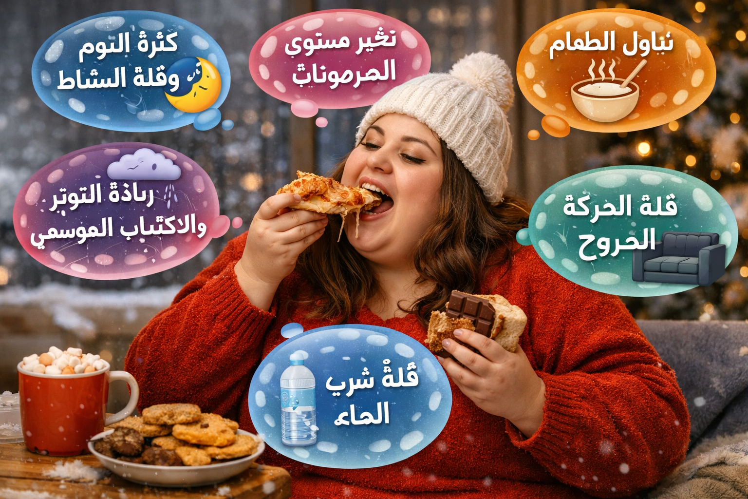 مع دخول فصل الشتاء وانخفاض درجات الحرارة، يلاحظ ناس كتير زيادة تدريجية في الوزن، حتى لو ما فيش تغيير واضح في كميات الأكل. الموضوع مش مجرد صدفة، لكنه نتيجة مجموعة من العوامل النفسية والجسدية والسلوكية اللي بتتجمع مع بعض وتخلّي الشتاء موسمًا لزيادة الوزن.