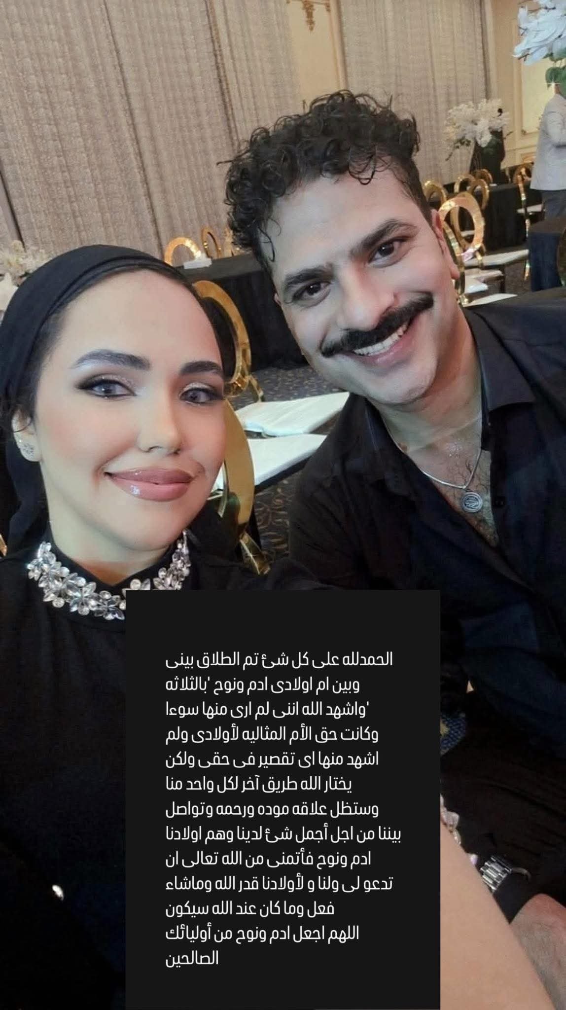 أكد الفنان في منشوره احترامه وتقديره لطليقته، مشيرًا إلى أنها كانت أمًا مثالية لابنيهما آدم ونوح، ولم يصدر عنها أي تقصير في حقه أو حق الأسرة.