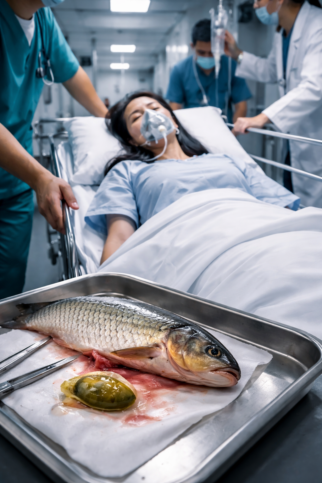 عانت السيدة من قيء شديد. وإسهال متكرر، إلى جانب آلام حادة في المعدة. ما أثار قلق أسرتها ودفعهم إلى نقلها على وجه السرعة إلى المستشفى. وبعد الفحوصات الطبية. شخّص الأطباء حالتها على أنها تسمم حاد بمرارة السمك مصحوب بفشل كبدي خطير. وفقًا لما أوردته صحيفة ساوث تشاينا مورنينج بوست.