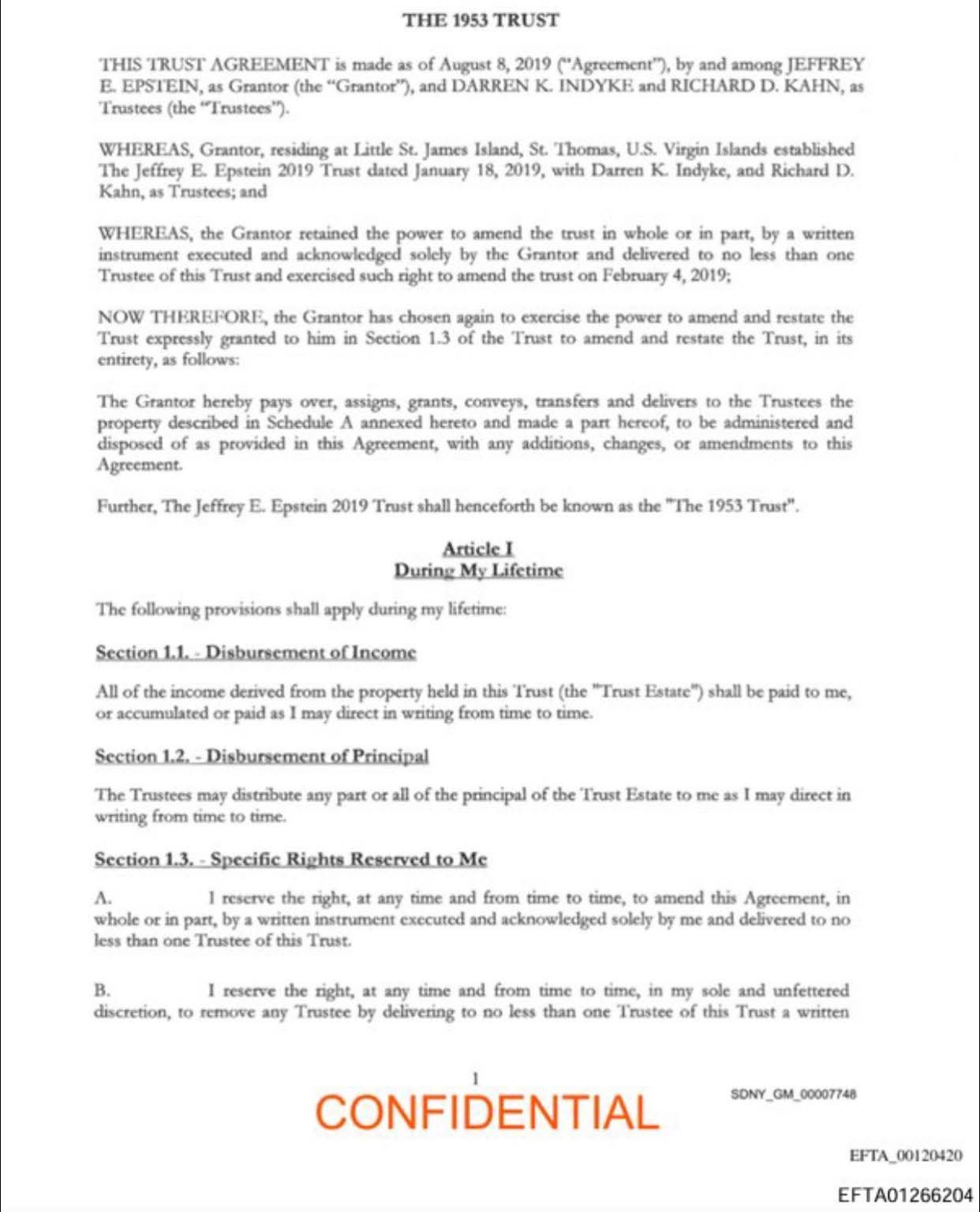 الوثائق كشفت أيضًا أن إبستين وقّع على صندوق ائتماني غامض قبل وفاته المعلنة بـ48 ساعة فقط، وزّع خلاله ثروته على: