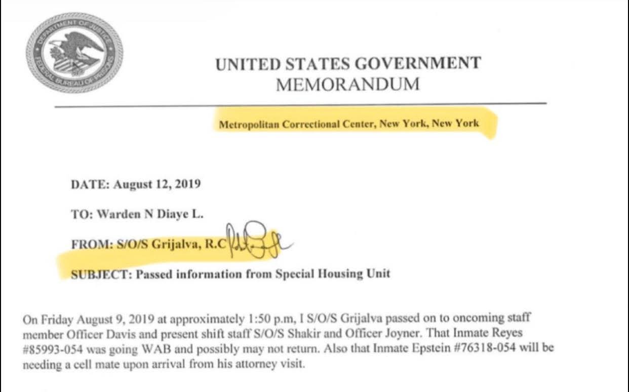 وبعد التحقيق، تم التعرف على هوية الناشر: ذروبرتو غريجالفا – ضابط في مركز الإصلاحيات بنيويورك وموظف في سجن إبستين نفسه.